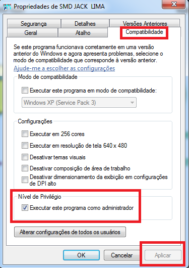 3. Marque a opção “Executar esse programa como administrador”, como na imagem acima
