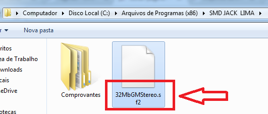e acesse novamente o endereço C:\Program Files (x86)\SMD JACK LIMA para adicionar o arquivo 32MbGMStereo