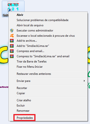 Para finalizar, vá até a área de trabalho, clique com o direito no ícone SMD JACK LIMA: